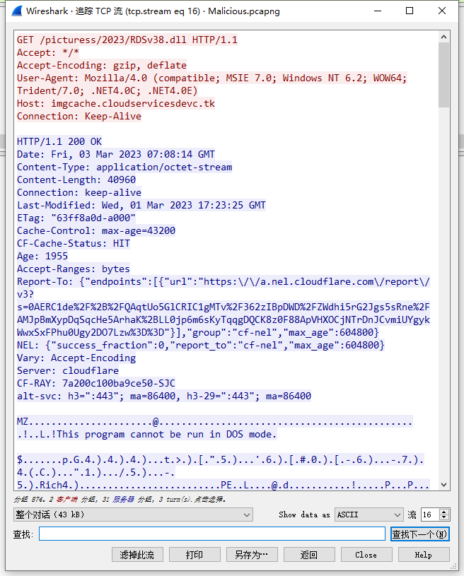 不过我一开始取巧,因为我 Wireshark 导出的时候一直忘记用 bin 一直用 text 然后就有一堆 0x2E,然后 hash 算不对,把这个丢 VT 上面,发现这个是实际存在的马,然后那个 sha256 居然不是题目的 sha256 ,题目可能是去了毒或者塞了考点什么的,hash 对不上,VT 出来的是这个:e652f9621cb00e0e3b3aa6935bdfa3c6826e3b53facdc55558692e7811dc4fc4