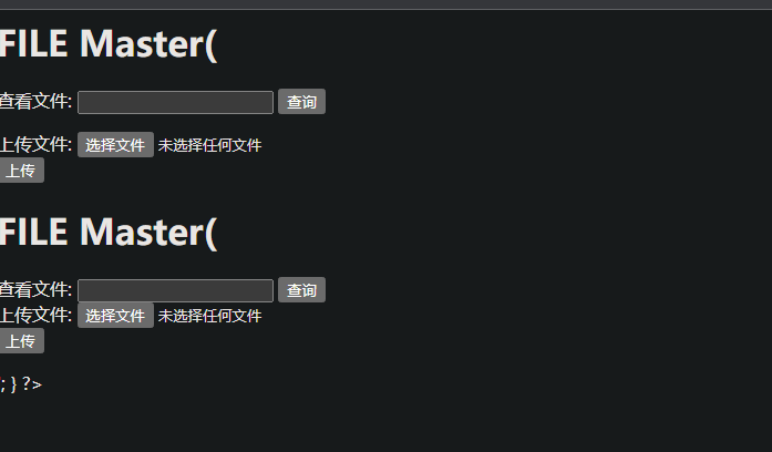步骤: 1.读文件处读源码,代码审计发现在上传文件处对文件类型进行了限制,只能为jpg格式,可以通过修改http请求绕过,然后对文件类型进行了检查,修改文件头绕过,然后在文件落地时发现它是先将文件移动到目的地再进行内容检查,有风险再删除,所以这里我们知道我们上传的地址可以考虑文件上传条件竞争,也就是在马上传上去后趁它还没被删除时访问,这里正常是要写脚本跑,但是这里在删除前有个sleep(5),传了马手动去访问都来得及 1.写马传马 2.在没删除前访问,写下另一个马或者直接拿flag,flag在根目录