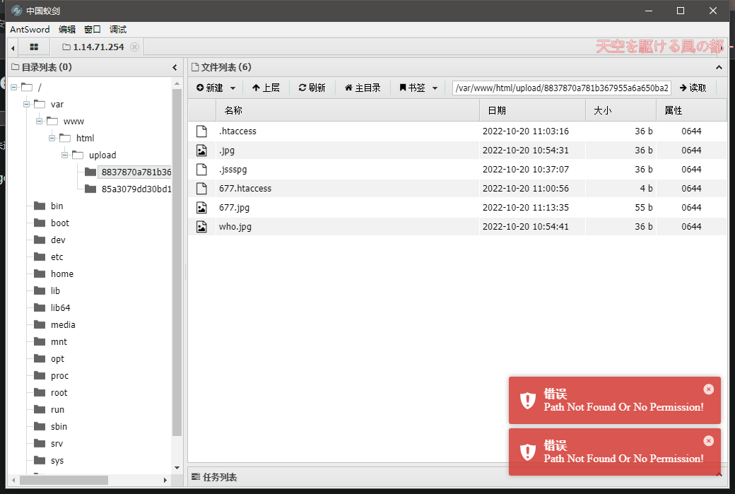 蚁剑连,可能会出现权限不足等问题,查看环境变量未找到flag