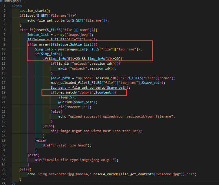 发现文件上传处做了几重检测,结合die的提示可以获得如下信息